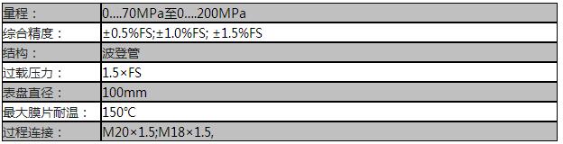 适用于机械震动和压力有波动的条件下的流体压力测量。